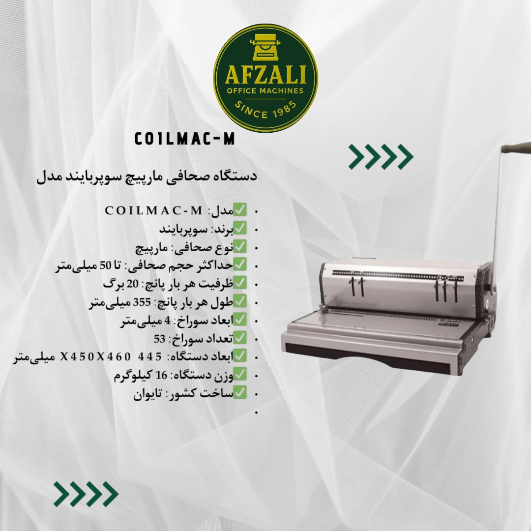 دستگاه صحافی مارپیچ سوپربایند مدل CoilMac-M