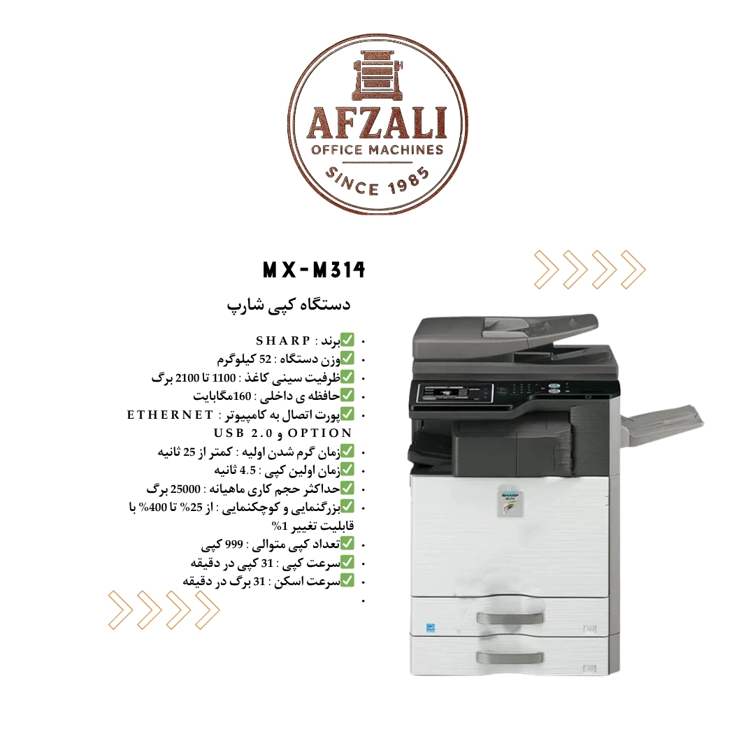 اولین کسی باشید که دیدگاهی می نویسد “دستگاه کپی شارپ MX-M314”